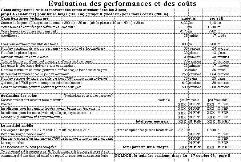 Les wagons du système GOLDOR sont d'un genre tout à fait original, ils acceptent les ensembles routiers ordinaires ou remorques seules jusqu'à 44 t aux dimensions suivantes : largeur aux pneus 2,50 m; largeur de caisse jusqu'à 2,60 m; longueur jusqu'à 19 m; garde au sol à partir de 0,25 m et hauteur 4,30 m sur les lignes au gabarit C, de 3,80 m au gabarit B et de 3,55 m au gabarit A. Sans aucune autre contrainte.