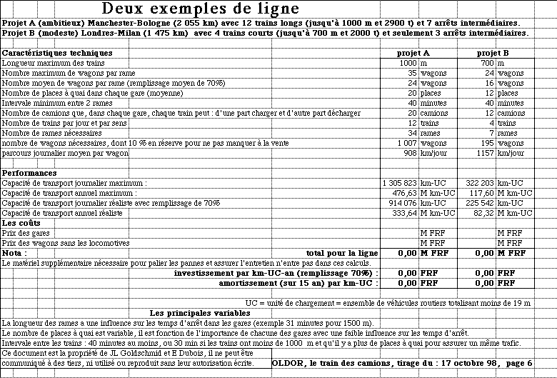 Pour être performant le système GOLDOR nécessite des lignes longues (au moins 2000 km) avec des possibilités d'arrêts tous les 200 à 300 km. Ceci permet une offre très variée et très souple. Pour illustrer notre proposition voici quelques lignes avec gares de correspondance en gras.