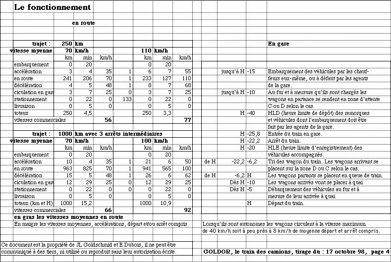 L'essentiel des performances du système GOLDOR est dû à l'originalité de la manutention des véhicules routiers, au chargement et au déchargement ainsi qu'à l'automatisation très poussée dans la manoeuvre des wagons dans les gares. Dès l'enregistrement, le chauffeur embarque lui-même son véhicule sur un wagon qui est à quai; il le reprendra sur le même wagon lorsqu'il sera à quai à la gare d'arrivée. Entre l'embarquement et le débarquement, les opérations en gare sont toutes automatiques.