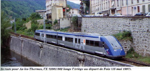 Afin de tester son comportement en conditions extrêmes, la direction du matériel et de la Traction a fait circuler, en mai, le nouvel automoteur sur les fortes rampes de la Section méridionale de la ligne de l'Ariège. un hôte de marque pour ce tronçon , peu fréquenté par des matériels modernes.