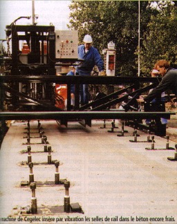 Ce procédé, breveté par une société belge, est actuellement testé sur un prolongement de 370 mètres du tramway lillois. Le recours à des éléments préfabriqués permet de diminuer le temps de pose, surtout pour la substitution de voie. " Notre objectif est de réduire de 50 % temps de renouvellement d'une voie ", explique Jean-Claude Guédé.